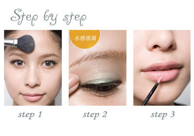 具体方法:水状的眼影比粉末更加保湿,沾取适量眼影后,沿着眼际涂抹,接着轻轻抹匀至眼窝处。