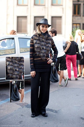 脖子上的皮草既能让性感不那么张扬又带着点高贵的奢华味道。