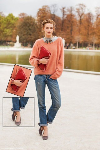 淡桔红的兔毛针织毛衣就这么肆意温暖着