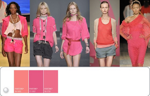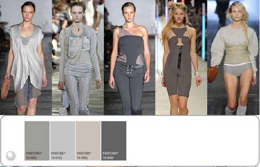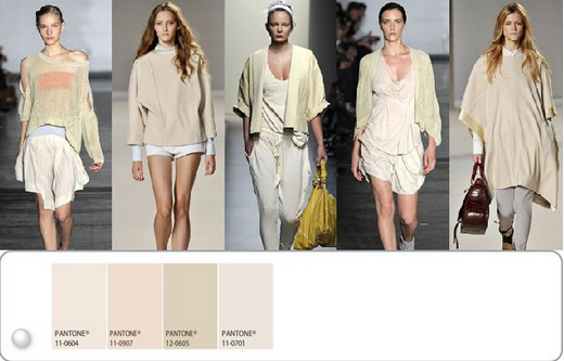 春夏季里女装的色彩中充斥着各种流行亮色,还有许多新的色调!其中有:奶油色,卡其色,新绿玉色,以及明亮的长春花色。灰色仍然占据着重要地位,而且与奶油色和流行亮色相互衬托,非常协调。草绿色的应用非常多,显然是受到了运动装里的军事风格主题元素影响。铁蓝色也继续发挥着重要作用,但是相对于长春花色来说已经不是那么新鲜了,而红色在本季里开始倾向于橘色调。柔和的浅淡色看起来非常新颖,而且与奶油色,白色和浅灰色形成某种对比。