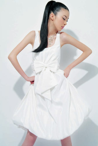 风格3-温婉柔美甜入心扉:甜美的小女人裙装当然少不了粉色,蝴蝶结,荷叶边,薄纱,珠链饰品等闪亮焦点。 k {$L'mKym