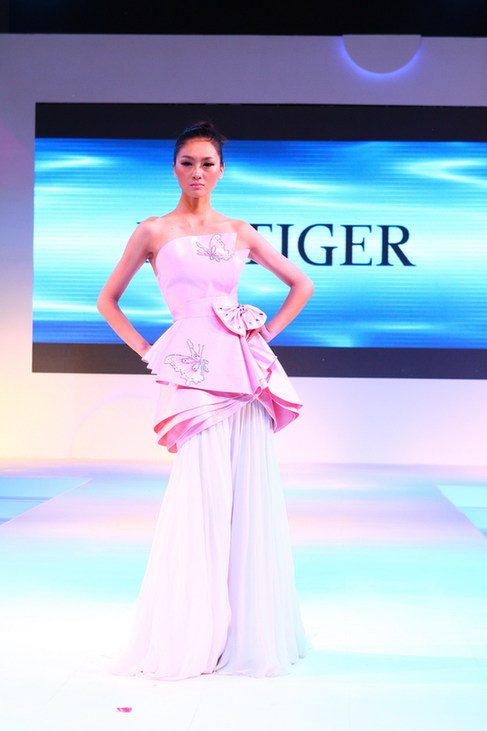 在当晚的开幕式上,中国第一奢侈品牌NE•TIGER代表中国,以一场风韵卓著的高级定制华服秀唱响了流行色彩主题的最高音,赢得在场各国嘉宾的诚挚赞叹与崇高敬意。NE•TIGER高级华服以“古今贯通、中西融汇”的设计理念,运用与现代元素巧妙结合的传统手工工艺,辅以时尚引领性的款式及剪裁手法,使中国濒临失传的工艺技术在当代焕然一新。在深入挖掘并传承中华奢侈品文明的过程中,NE•TIGER更是致力于对中华传统“国色”的发扬。在我国古代,秦尚黑,大气古朴;南北朝崇尚蓝色,明快飞扬;宋代推崇“存天理,去人欲”,清新雅致的绿色成为主流;此外,象征皇权的黄色和气势磅礴的中国红则始终是中华民族心中永不褪色的国色。黑、红、蓝、绿、黄这五大国色成为华夏文明中对于流行色彩一脉相承的代表,它们历经时空,在今日NE•TIGER高级华服系列中得到了全新演绎。NE•TIGER由“国色”的丰富色彩,重拾文明的记忆,以锦绣缂丝等为材为工,将五大国色的复兴在新创设计中得以实现。