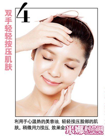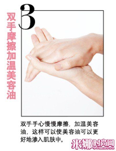 3、双手摩擦加温美容油