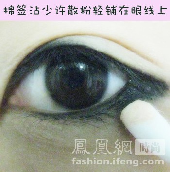 我的小技巧:我最爱晕妆的部分就是眼睛,所以我一般都会在画完眼线之后用棉签轻轻铺上一层散粉,这样可以有效起到定妆的效果,来真人秀小眼睛一张!
