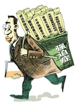 心理专家认为,随着社会压力越来越大,不少都市白领都患上了“强迫症”,特别是管理阶层人士,做事力求 完美,有时表现过度,会出现强迫行为。而且强迫症状已涵盖了生活的方方面面,只是大多数人没有感觉到而已。