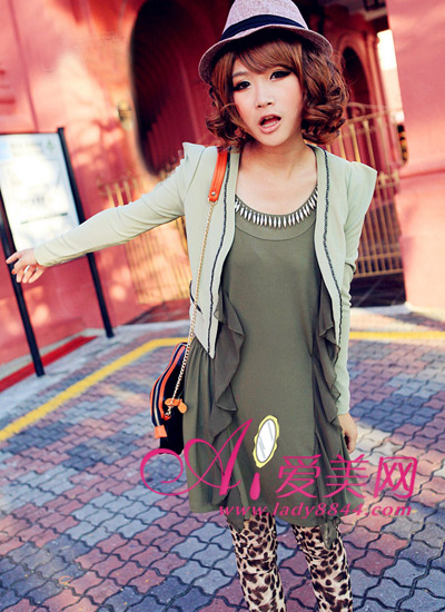 碧绿色的淑女小外套,精致的车线充满大牌范,泡泡袖的设计更增加优雅甜美指数,搭配豹纹紧身裤,增添几分狂野魅力!