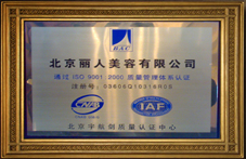 北京丽人美容有限公司通过ISO9001:2000质量管理体系认证